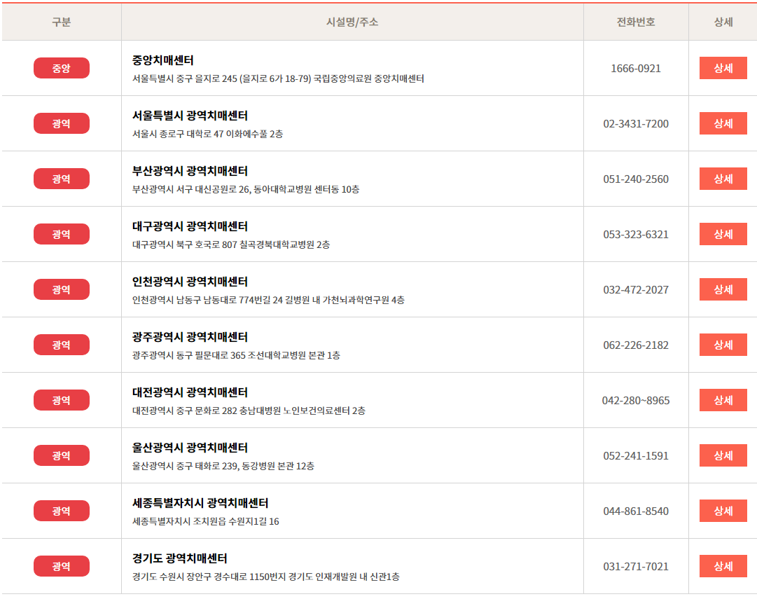 거주 지역의 치매안심센터는 아래 링크를 클릭해서 찾아보시기바랍니다.