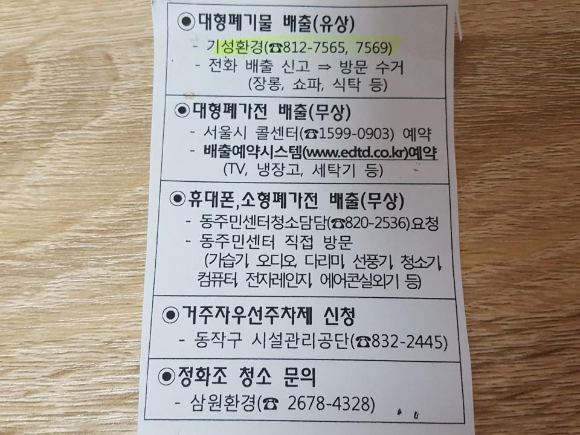 ※ 저는 동작구 주민센터에서 안내받은 것이여서 다른구는 업체가 다를 수 있습니다.