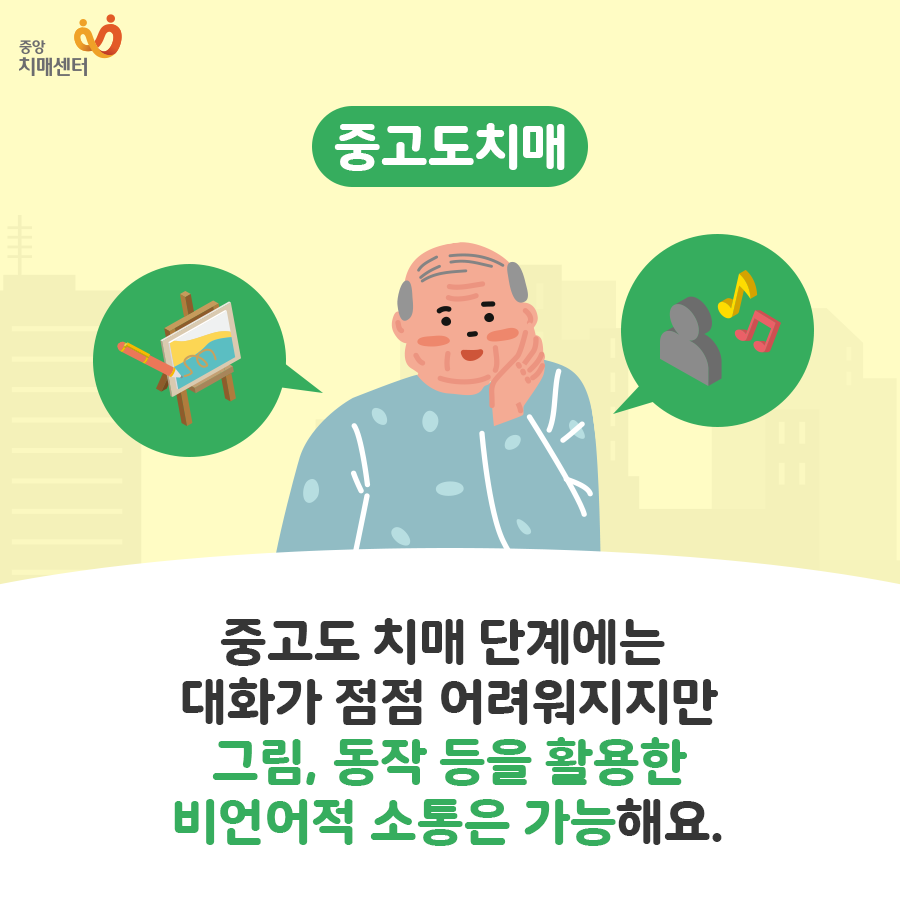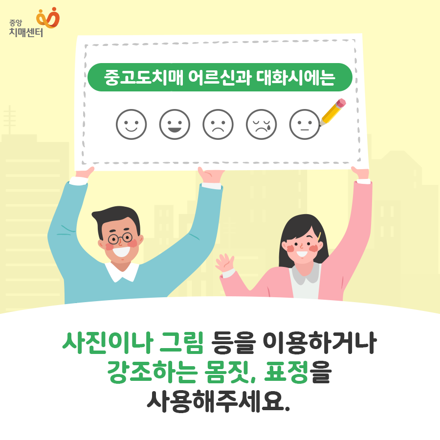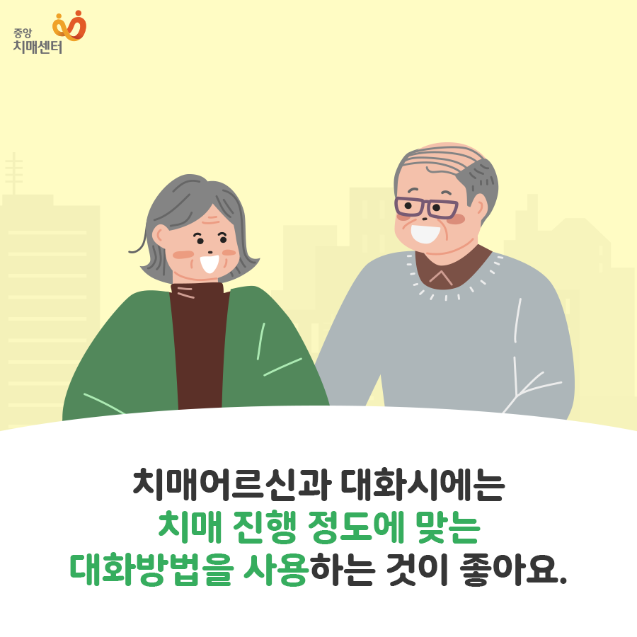 치매의 정도에 따라서 사용하는 대화가 달라져야 합니다. 아래의 이미지를 통해서 확인해 보시기 바랍니다.