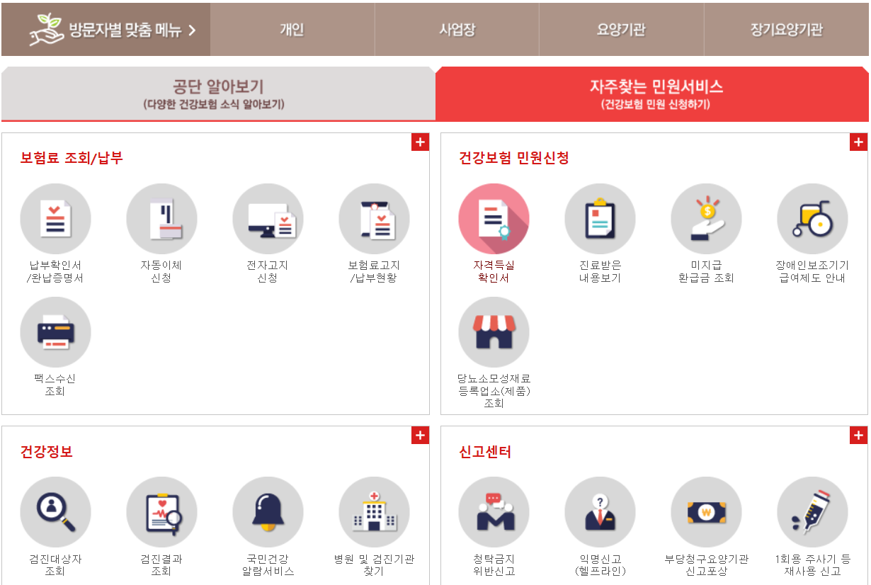 국민건강보험 사이트는 개인 공인인증서로 접속하시면 됩니다.
