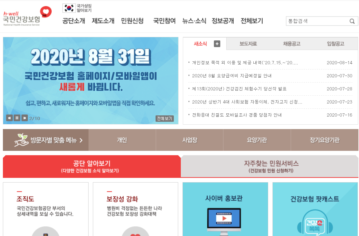 국민건강보험 사이트는 개인 공인인증서로 접속하시면 됩니다.