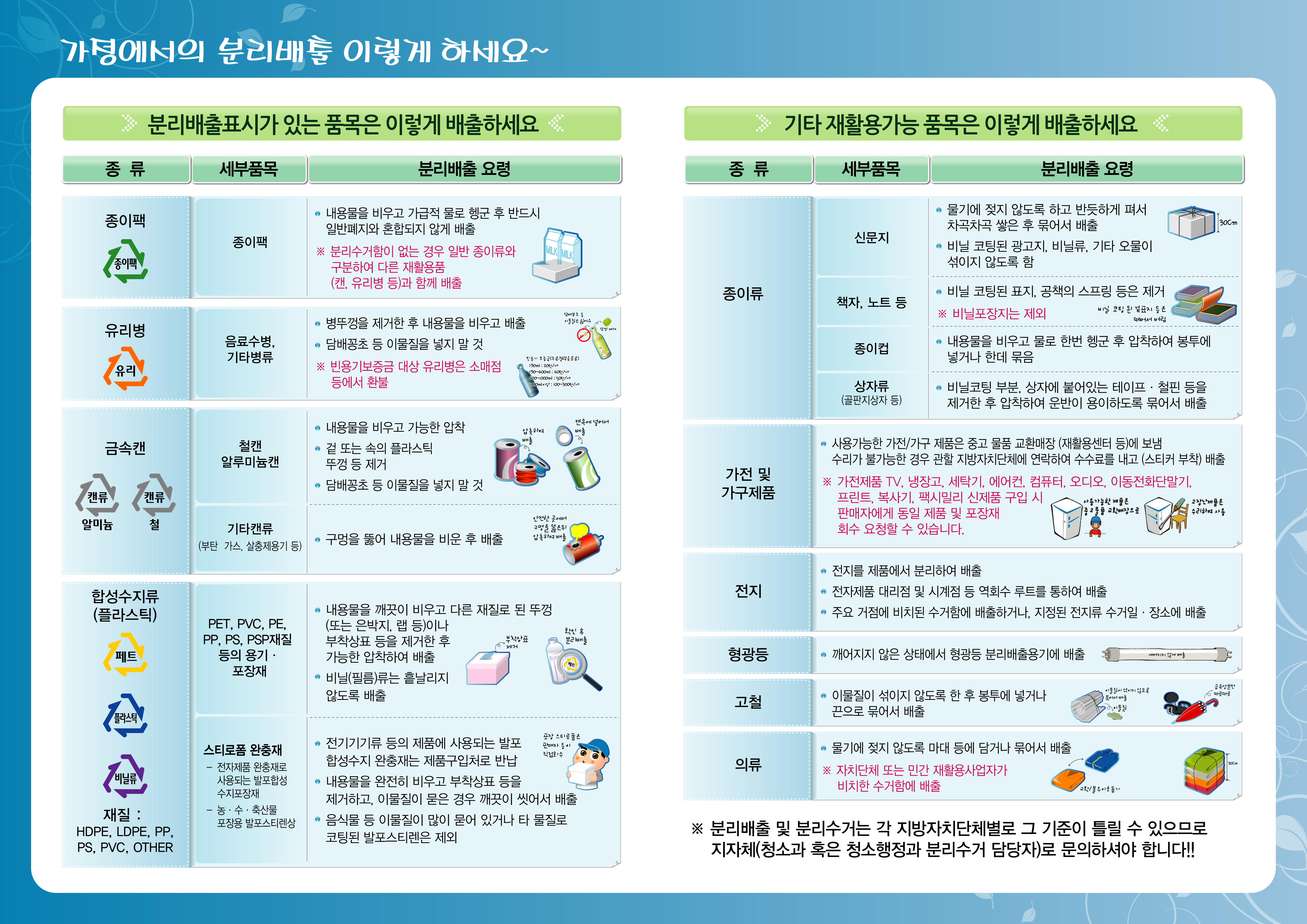 아래는 가정의 쓰레기 분리배출 안내문입니다.
