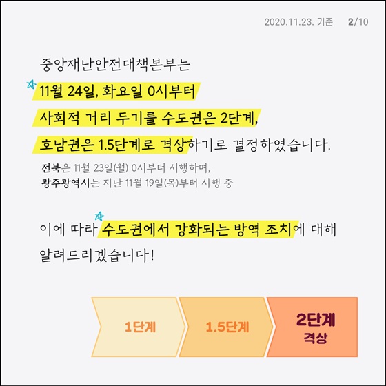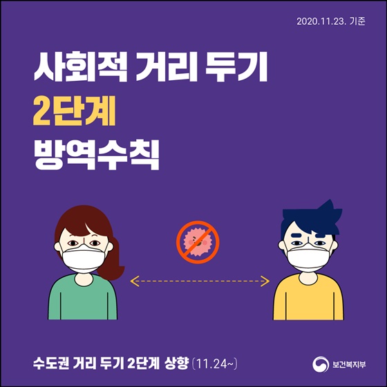 사회적 거리두기 2단계가 시행되고 있습니다.