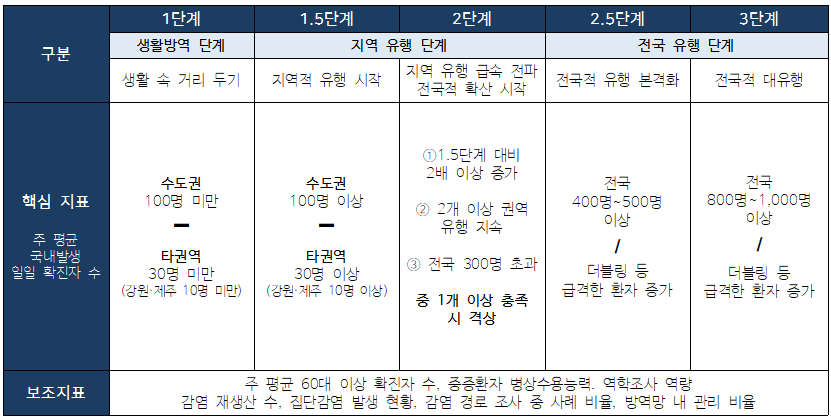 √ 1단계 생활방역, 2.5단계 3단계 전국 유행 단계