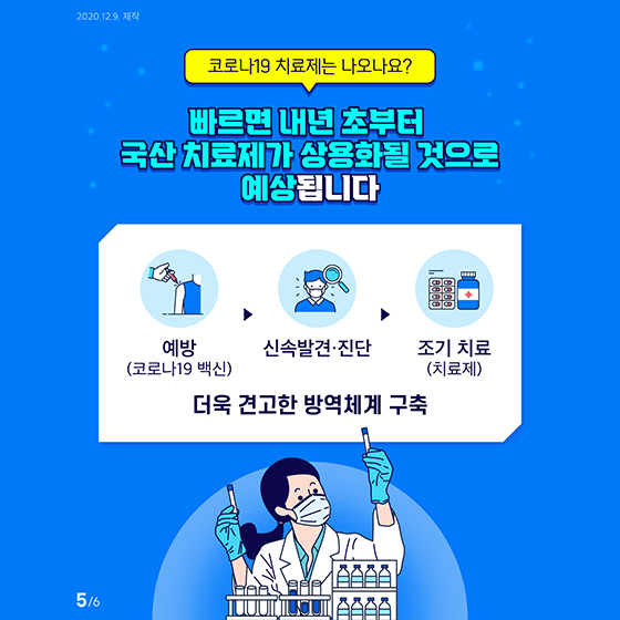 국내 제약사 치료제가 내년 초부터 사용될 예정입니다. 현재 치료제 개발이 잘되고 있어서 백신보다 치료제가 먼저 사용할 수 있습니다.