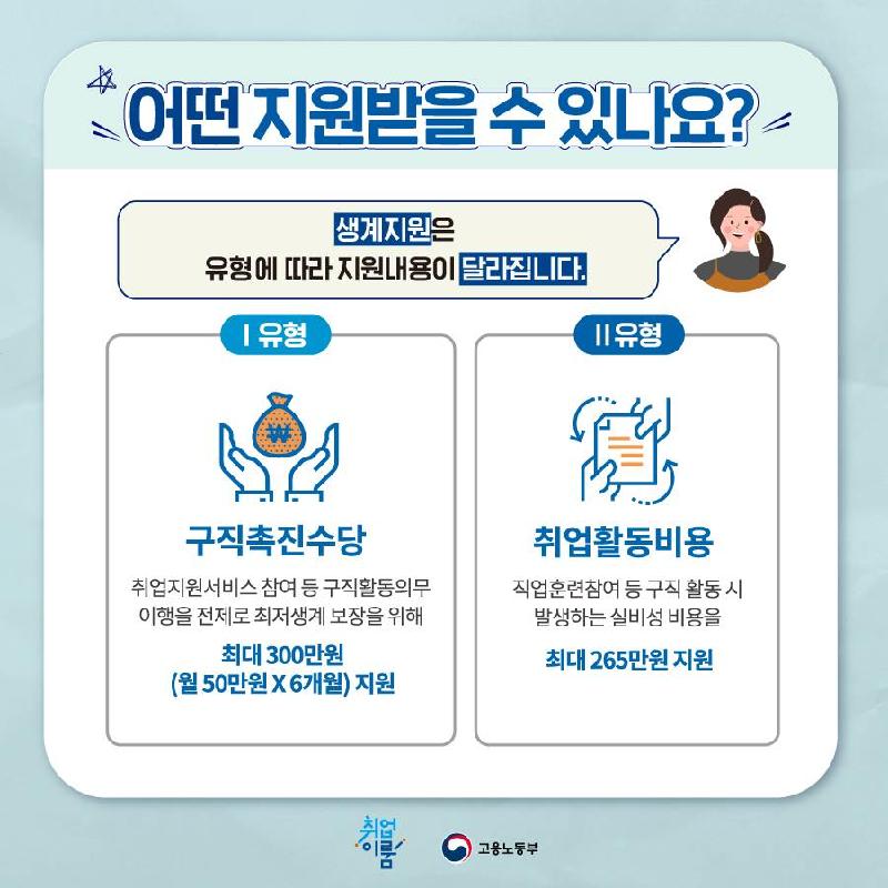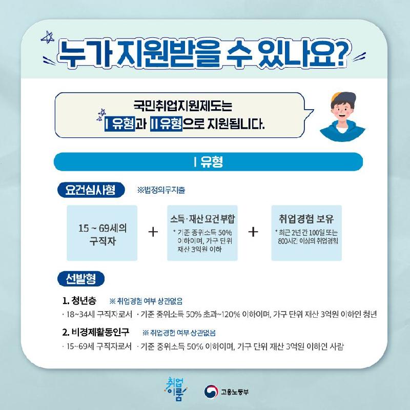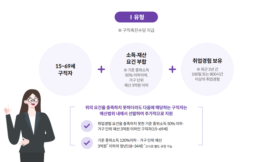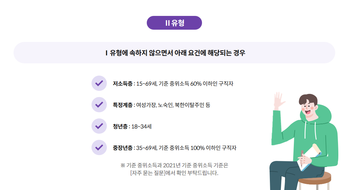 특정 조건에 부합하는 사람이 대상자인데 Ⅰ유형과 Ⅱ유형 2가지로 구분해서 지원됩니다.