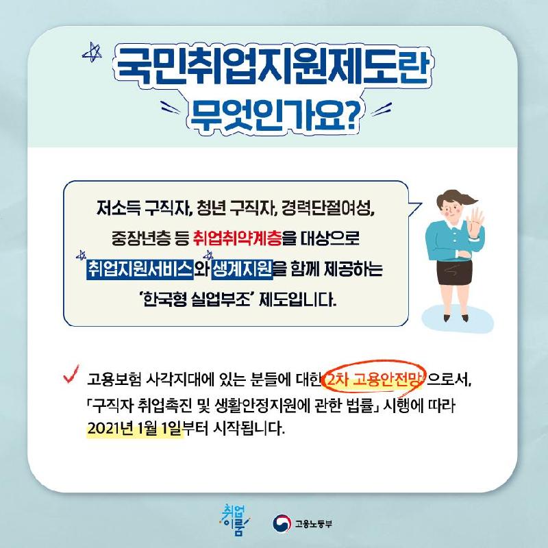 2021년 1월 1일부터 국민취업지원제도가 시행됩니다.