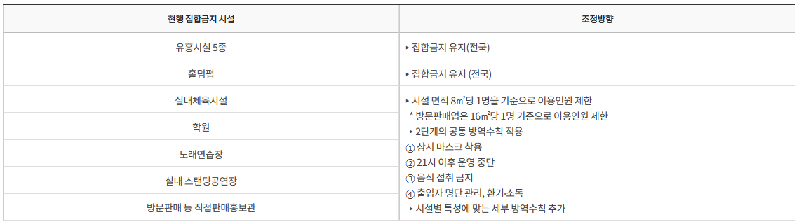 * 테이블 간 거리 두기는 기존의 거리 두기 2단계 조치와 동일합니다.