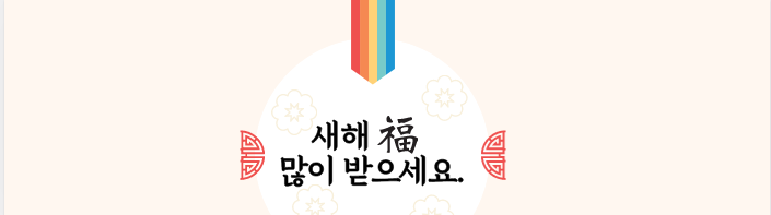 즐거운 설을 맞이해서 새해 가슴속에 묻은 소망들이 모두 이뤄질 수 있는 한해가 되길 기원합니다. 설 연후 동안 건강하고, 행복한 시간 보내시길 바랍니다. 새해 복 많이 받으세요.