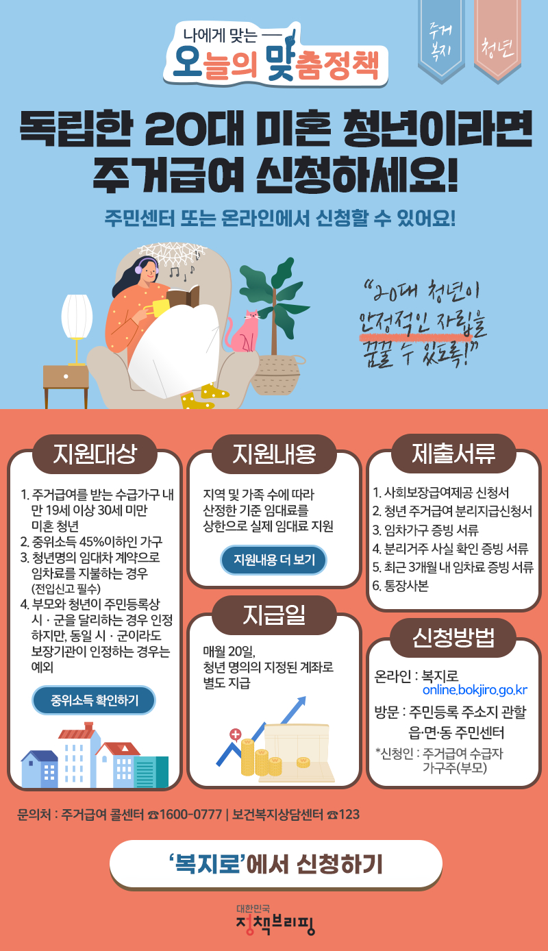 20대 미혼 청년이신가요? 주거급여 신청하세요!