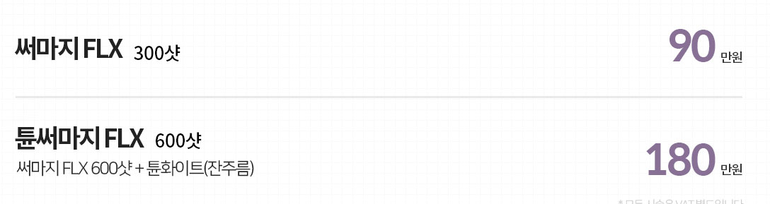 써마지 300샷 90만원, 튠써마지 600샷 180만원입니다.