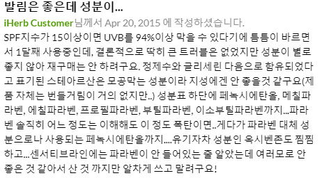 SPF 15 선크림 선로션 사용 후기