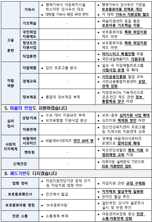 이 외에도 보호종료아동을 위한 개선된 제도 등을 추가적으로 확인해보겠습니다.