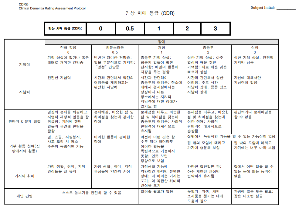 CDR 척도 0 0.5 1 2 3 점수에 따른 치매 수준 확인해보세요