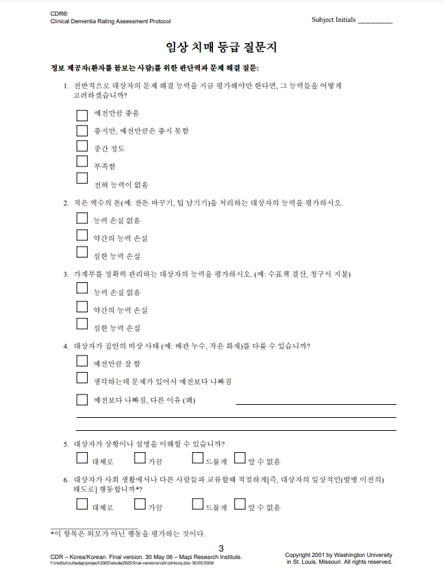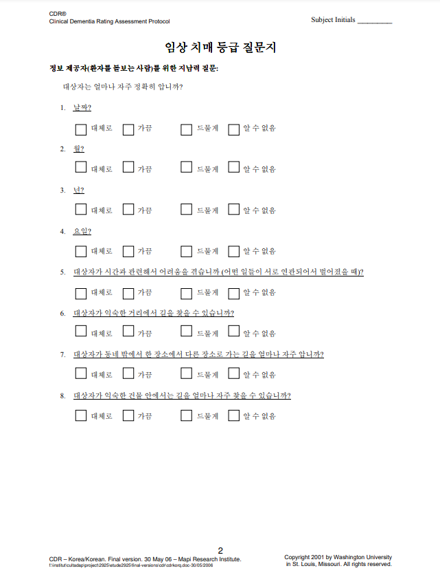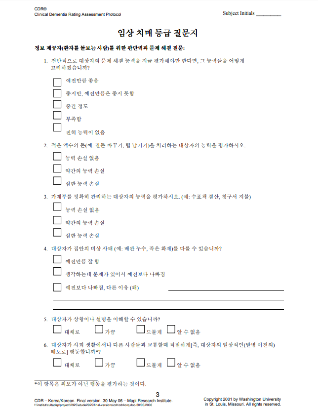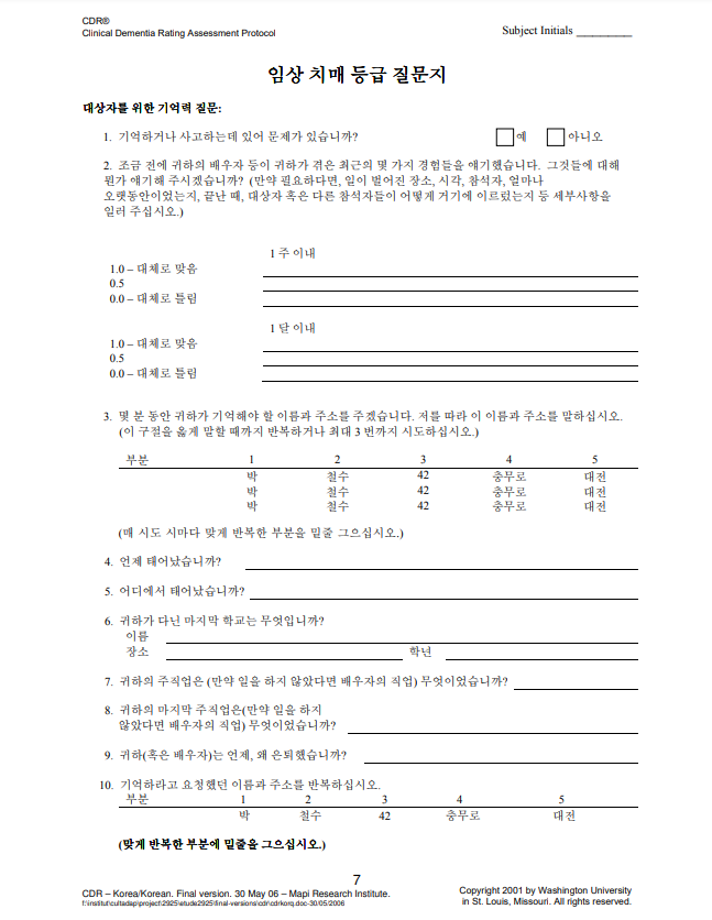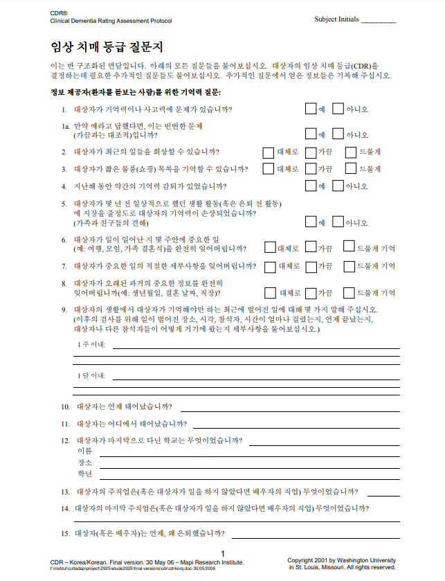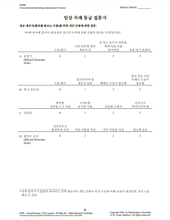 환자가 하는 답변과 보호자가하는 답변을 평가해서 CDR 척도가 나오게됩니다.