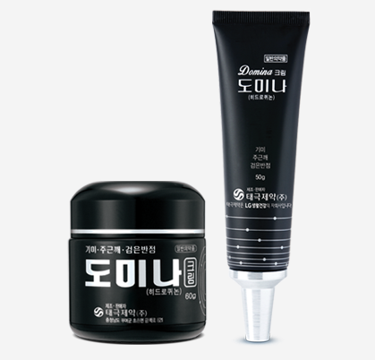 도미나크림과 비슷한 크림들이 여러 종류 있는데요. 공통적으로 들어가 있는 성분이 바로 히드로퀴논 성분입니다. 히드로퀴논은 색소침착을 만드는 멜라닌 세포를 감소시키는 성분으로 기미, 검버섯, 흑자, 주근깨 등을 "탈색" 시킵니다.