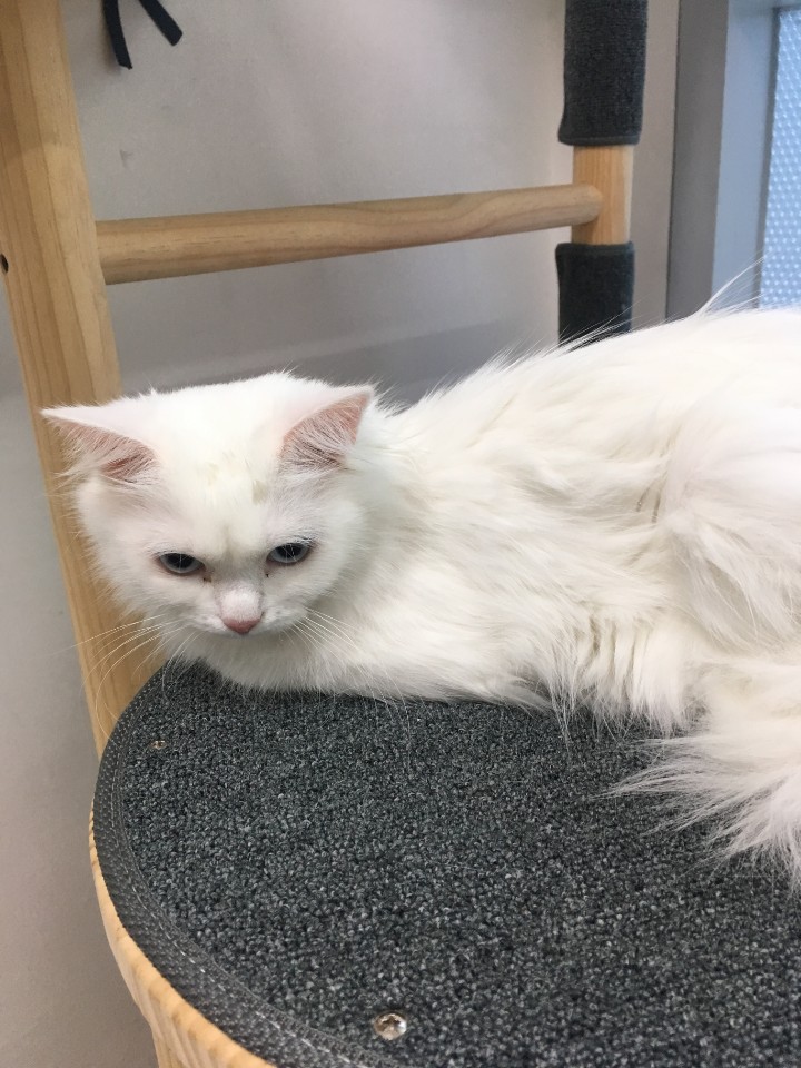 눈꼽이 있는데 고양이를 만지지 못하니 떼어주지도 못했습니다.