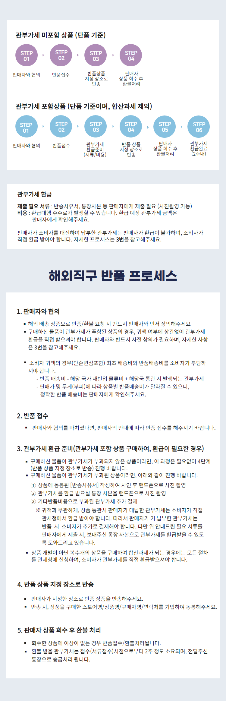 아래에서 해외 직구한 물품의 반품 절차를 안내해드렸으니 확인해보시기 바랍니다.