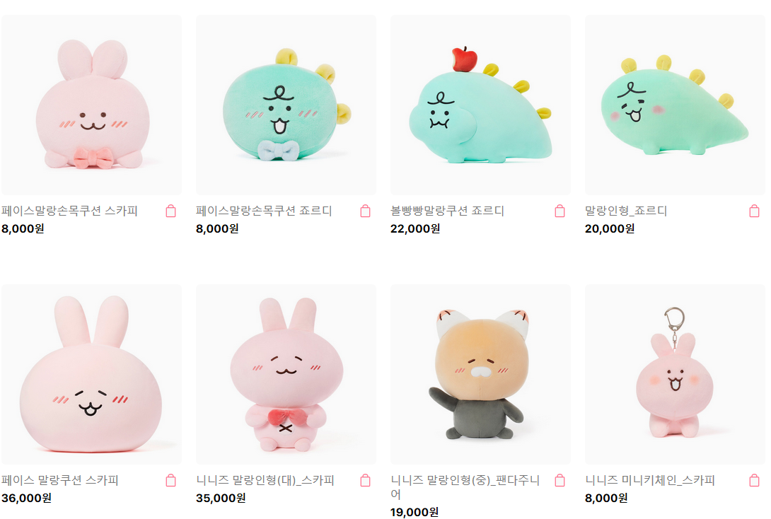 종류가 다양하네요. 손목 쿠션은 캐릭터 얼굴이 바닥을 향하게해서 사용을 해야하는데 그렇게 사용하기에는 캐릭터들한테 미안하네요. 흑흑.