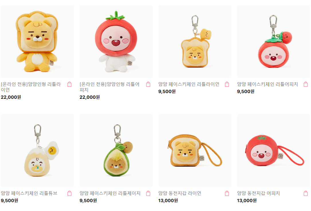 라이언 어피치가 얌얌인형이 되었습니다. 먹음직스럽고 디자인별로 하나씩 소장하고 싶네요.