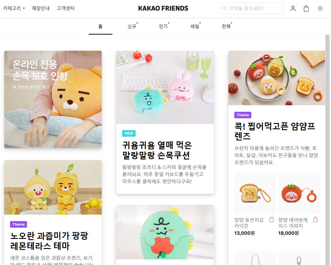 아래는 카카오프렌즈샵의 홈페이지입니다.